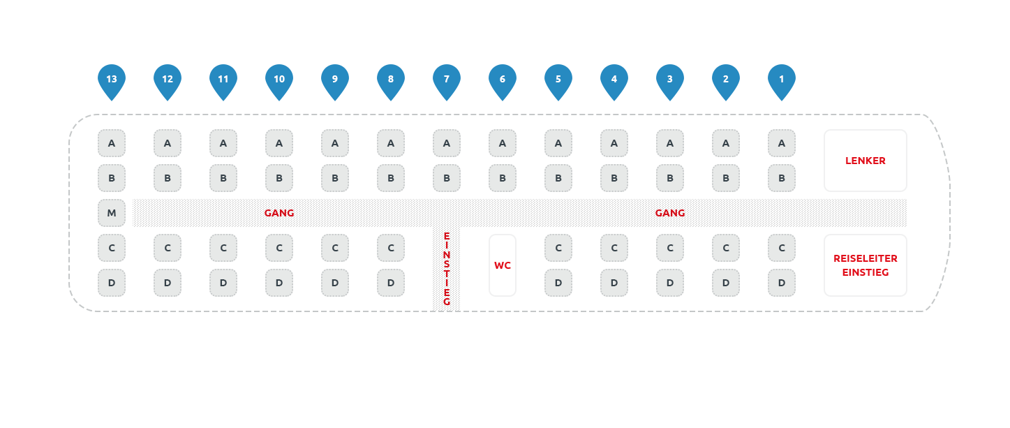 Unsere modernen Busse sind mit bequemen Sitzen und viel Platz ausgestattet.