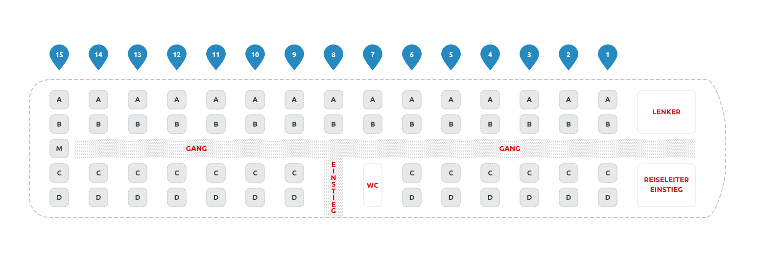 Unsere modernen Busse sind mit bequemen Sitzen und viel Platz ausgestattet.
